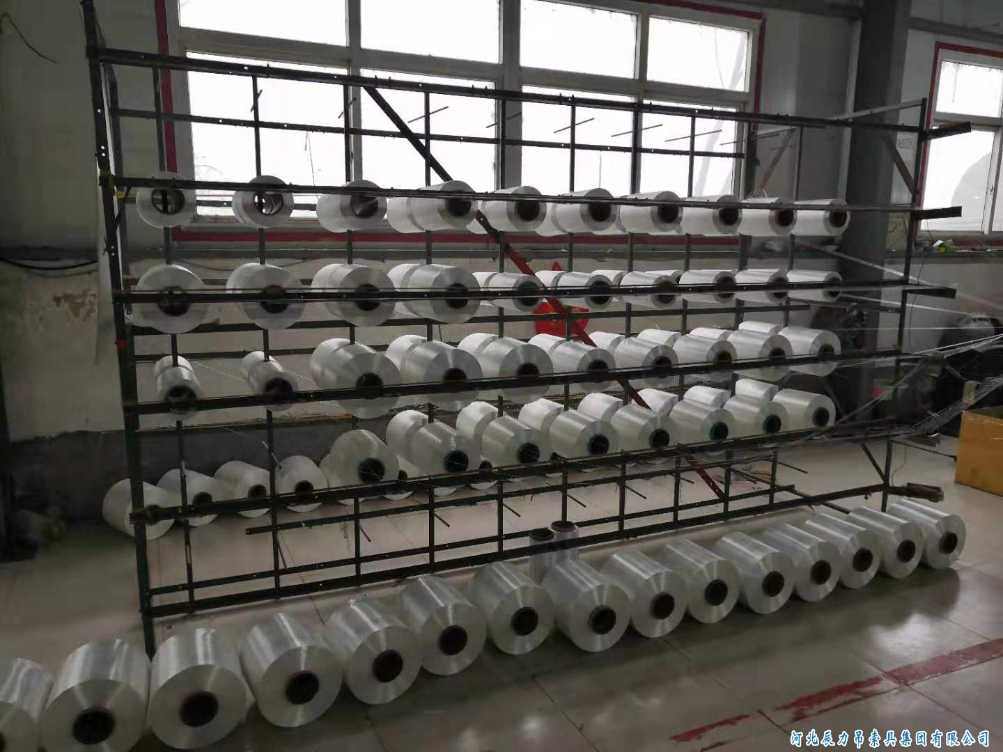 一開始咱們整經機用的很多,因為咱們老的那個織機沒有一步紡。它那個上面就放幾個紗架,放那個幾個軸,十幾個軸兒或20幾個軸。所以,假如說吊帶用1000根兒絲,咱們不可能放1000個紗架吧,放不下那么多軸兒,所以就用幾十根兒絲,然后整在一起整一個徑盤,然后每一個織機上面放三十或十幾個徑盤,20幾個徑盤。現在咱們整經用的少多了,就用一個整徑機,整點那個特殊用的絲。